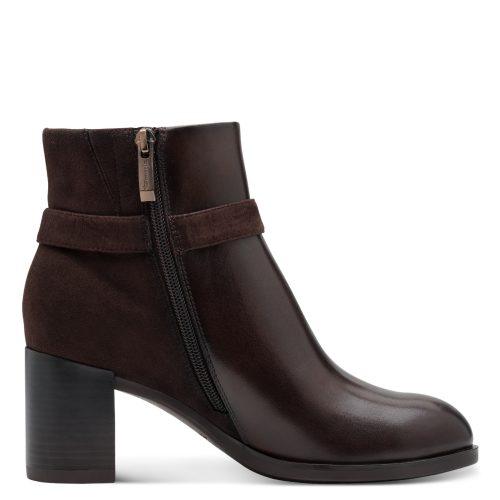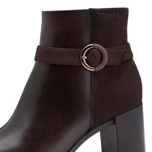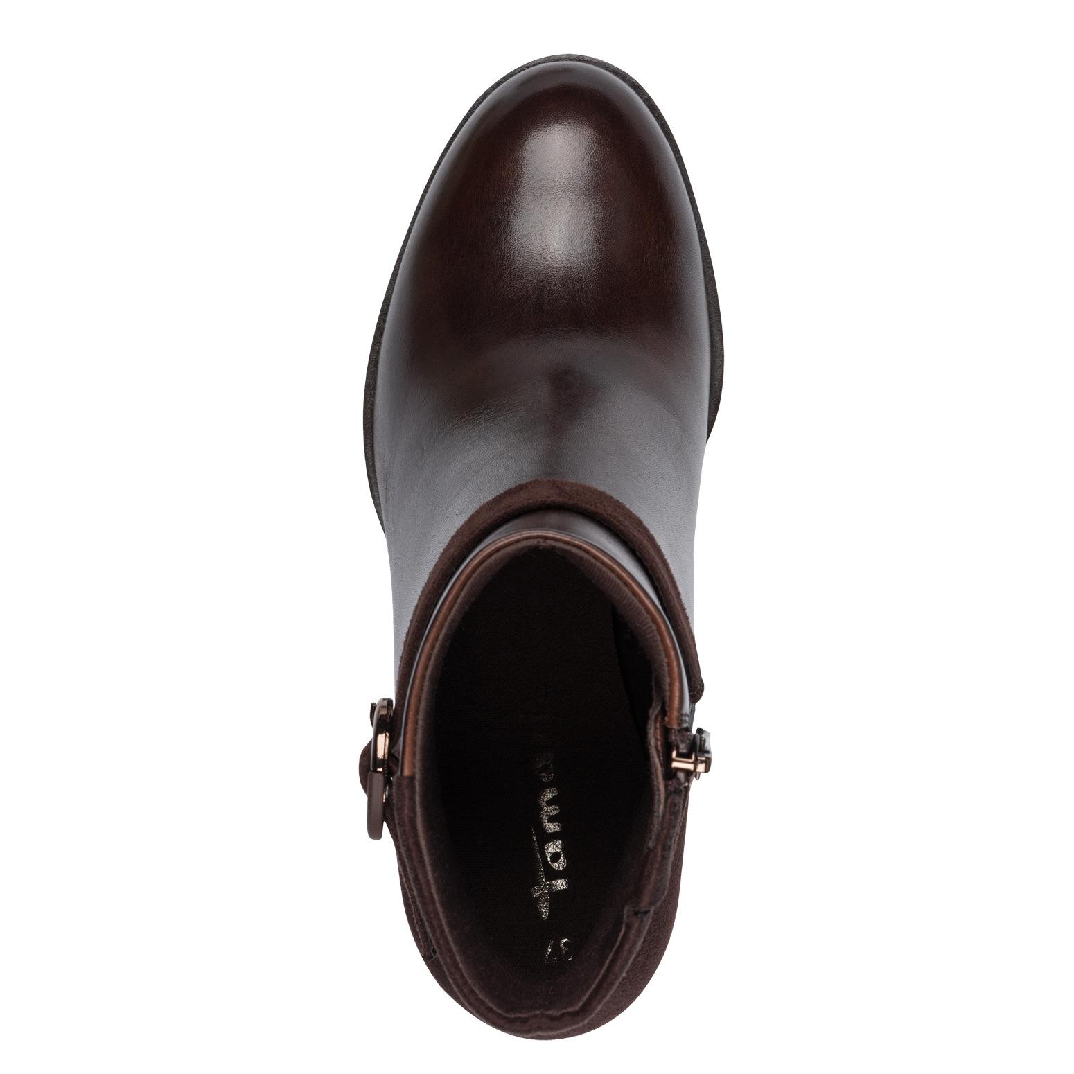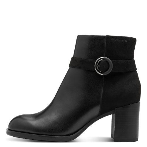 Ανατομικά γυναικεία δερμάτινα μποτάκια του οίκου Tamaris, με πάτο τεχνολογίας TOUCH IT, οποίος προσαρμόζεται και παίρνει τη φόρμα του ποδιού, προσφέροντας ομοιόμορφη κατανομή του βάρους κατά μήκος του πέλματος και απορρόφηση κραδασμών. Σόλα αντιολισθητική και σταθερό τετράγωνο τακούνι σας προσφέρουν άνετα και ασφαλή βήματα. Φόρμα κανονική. Ύψος τακουνιού: 6,5 εκατοστά.