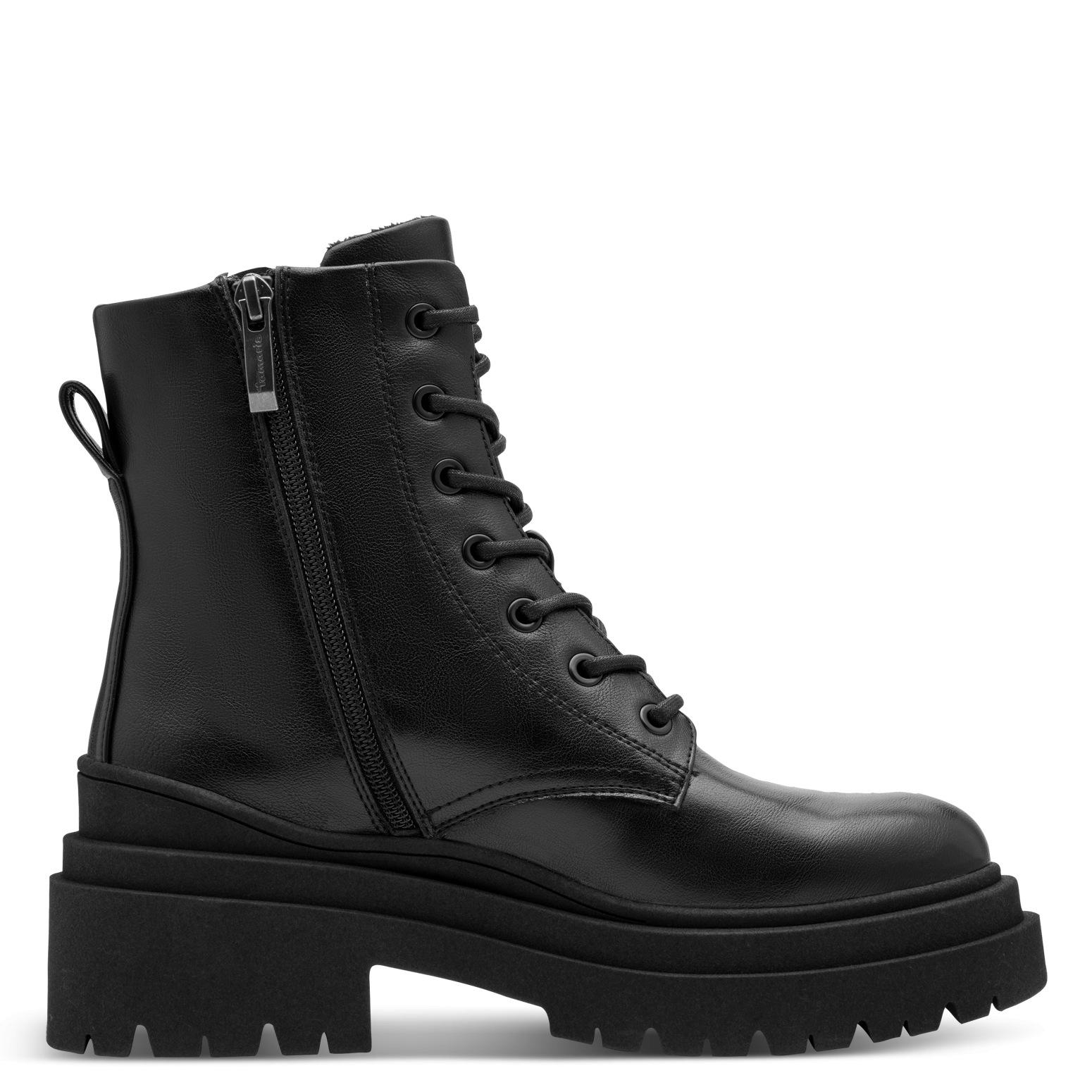 Γυναικεία μποτάκια της εταιρίας Tamaris σε μαύρο χρώμα. Διαθέτουν σόλα 6 εκατοστών και δένουν με κορδόνια, αλλά και με φερμουάρ για γρήγορη εφαρμογή. Το μαλακό πατάκι Touch-It τα κάνουν ιδανικά για να τα φοράτε όλη μέρα χωρίς να κουράζουν. Κομψά και άνετα θα συνοδεύουν τα βήματά σας από το πρωί έως το βράδυ.