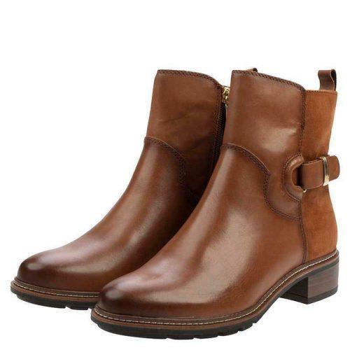 Γυναικεία basic μποτάκια Tamaris με φερμουάρ για εύκολη εφαρμογή και αφαίρεση. Σε μαύρο και κονιάκ χρώμα και συνδυασμό υλικών δέρμα και σαμουά. Με χαμηλό τετράγωνο τακούνι για να φορέσετε με άνεση και κομψότητα. Με λιτή γραμμή είναι το must have μποτάκι της φετινής σεζόν. Ύψος τακουνιού: 3,5 εκατοστά.