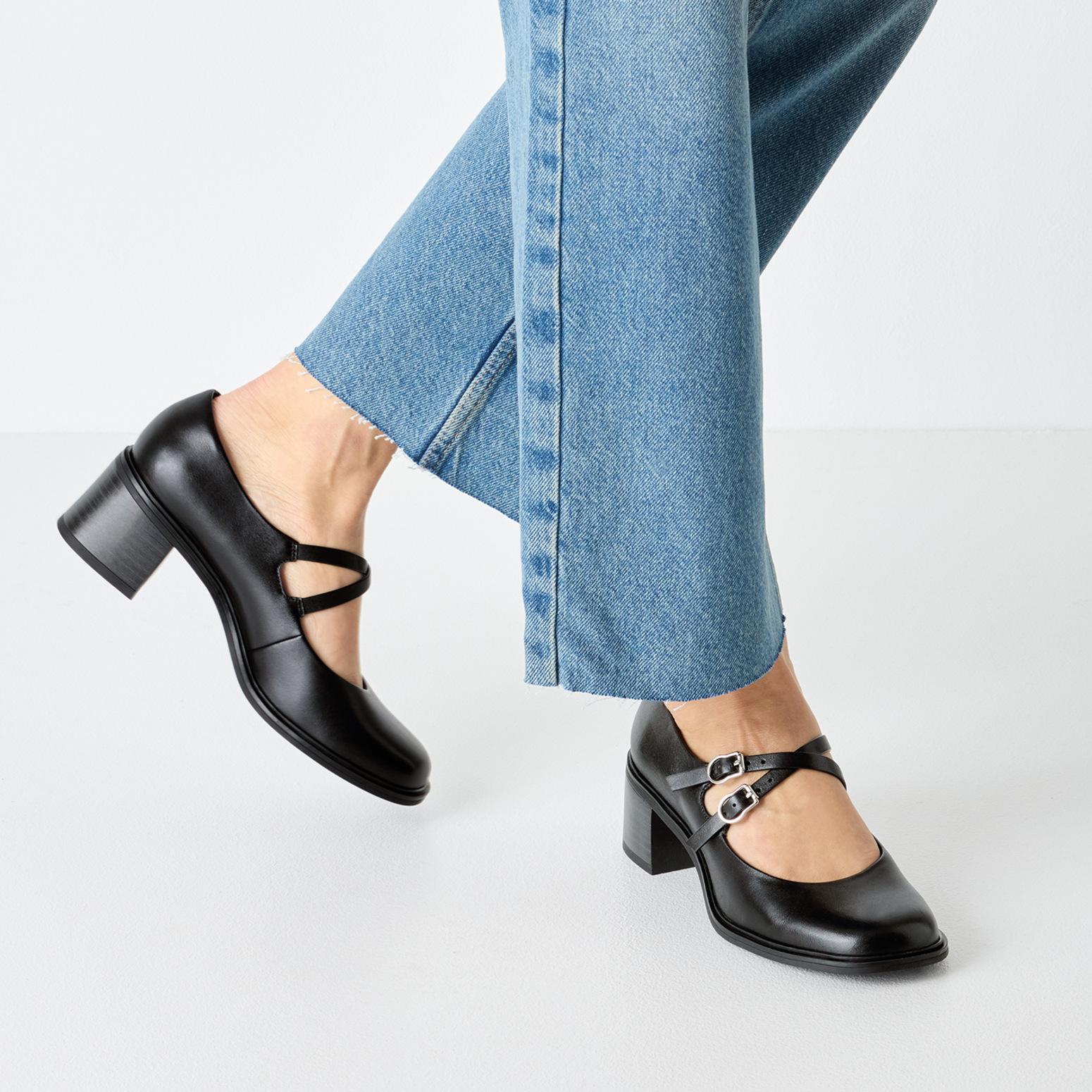 Μαύρη δερμάτινη γόβα Mary Jane από την εταιρεία Tamaris. Διαθέτει λουράκια με ασημί τοκά στο επάνω μέρος, στρογγυλή μύτη και χοντρό τακούνι ύψους 5,5 εκατοστών. Έχει κανονική φόρμα και μαλακό πάτο. Προσφέρει σταθερό και άνετο πάτημα καθώς έχει την τεχνολογία Touch It και ANTIslide. Τέλεια επιλογή για να συνδυάσεις αμέτρητα looks!