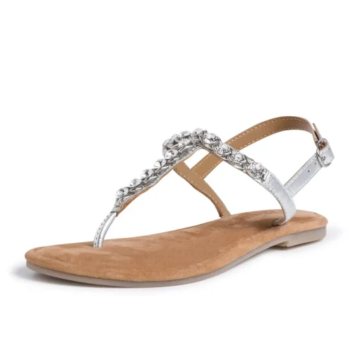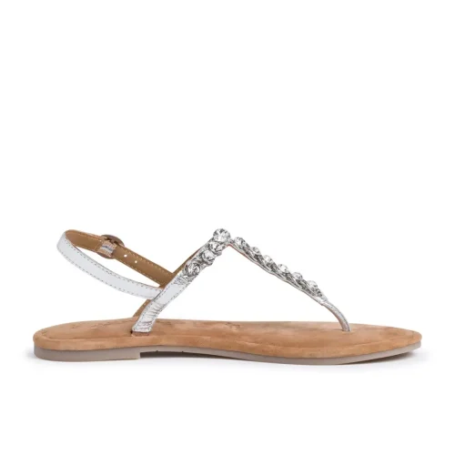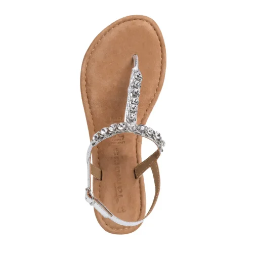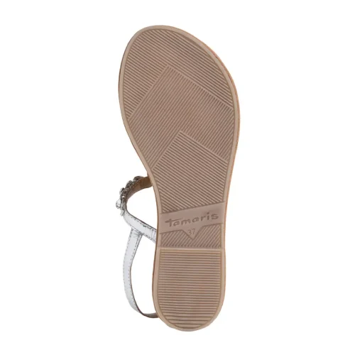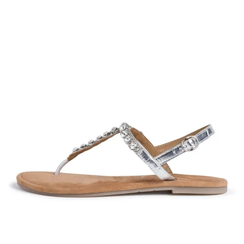 Δερμάτινα flat σανδάλια από τον γερμανικό οίκο Tamaris. Σε υπέροχο ασημένιο χρώμα, διχάλα και ρυθμιζόμενο λουράκι που δένει πίσω από την φτέρνα, αποτελεί ένα must κομμάτι για την καλοκαιρινή σας συλλογή!